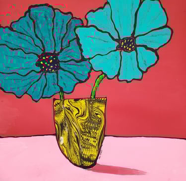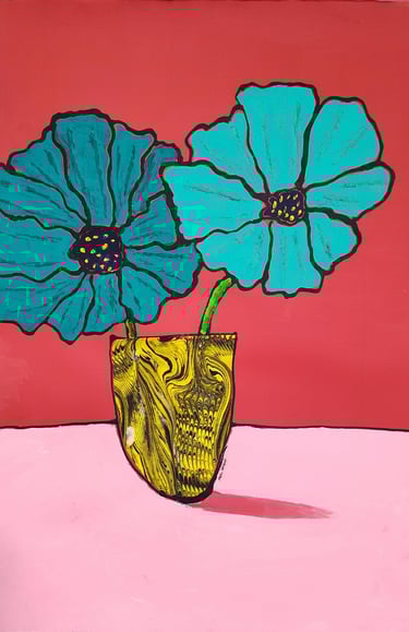 "Cosmos on a Pink Table" intricately combines vibrant colors, textures, and dimensions that evoke a sense of otherworldliness. In my exploration of acrylics and collage, the colors harmoniously collide, resonating with the delicate balance between chaos and tranquility often found in nature. The use of the marbled vase adds a layer of depth, reminding viewers of the organic aspects of artistic creation. This piece exemplifies not only my growth as an artist but also pays homage to my instructors, who embody the essence of kindness and support in their mentorship.